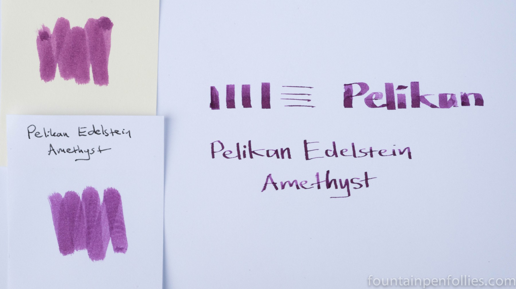 Amethyst, however, seems to have nudged PdL aside for me, at least temporarily. I like Amethyst’s warm purple, and I really like how it flows in my pens. Unfortunately, Amethyst won’t be around forever, since it’s Pelikan Edelstein’s Ink of the Year for 2015.