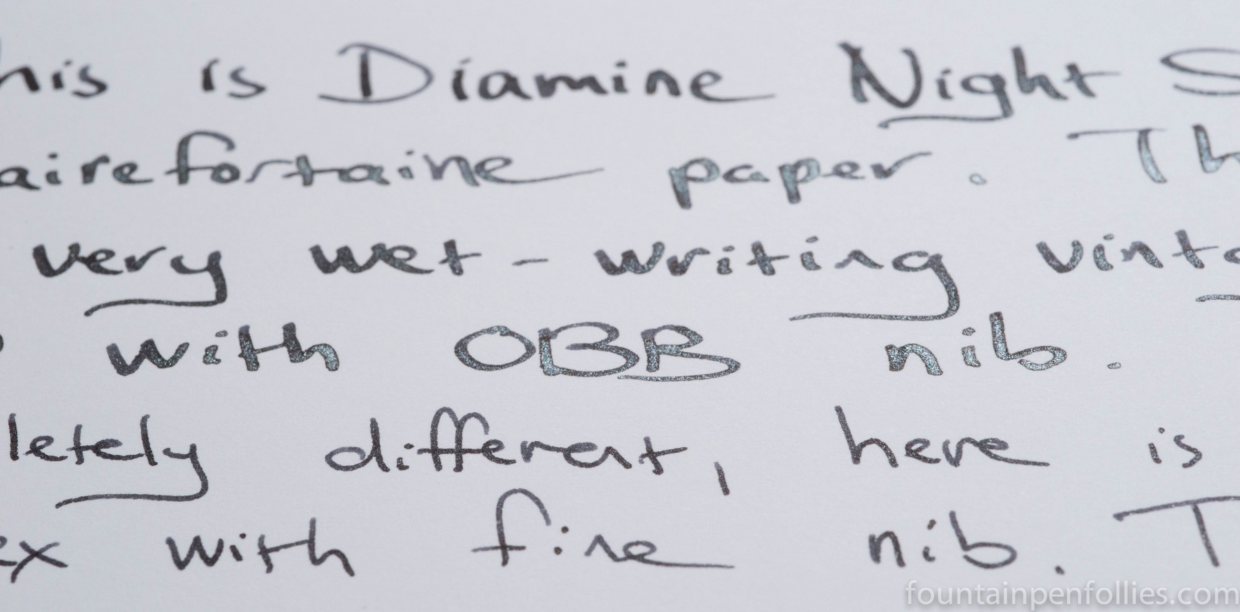I used Night Sky in a fine nib Parker Reflex, just for something different. Ink flow was perfect, and it dried very quickly from the fine nib. I still see plentiful shimmer from the fine nib.