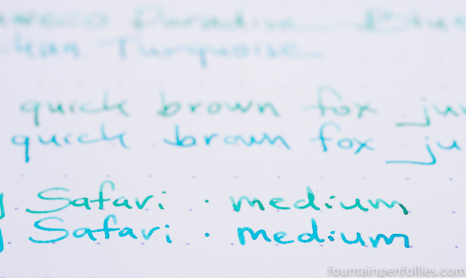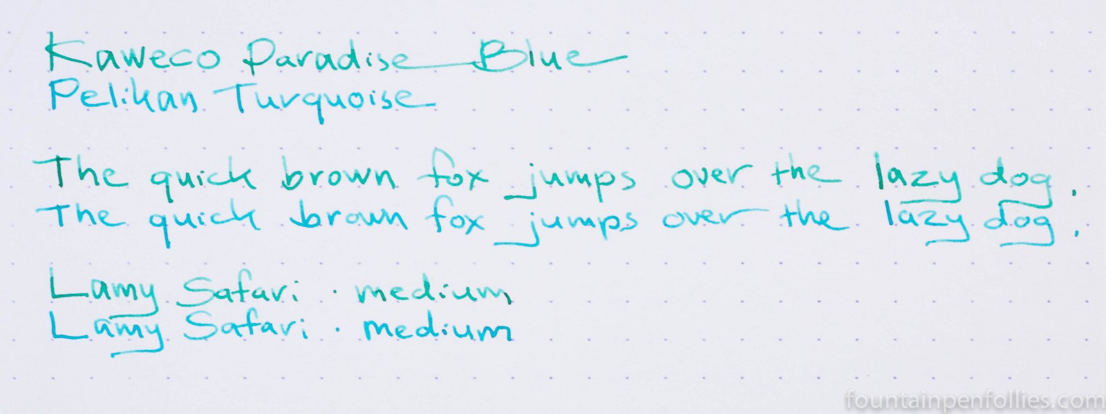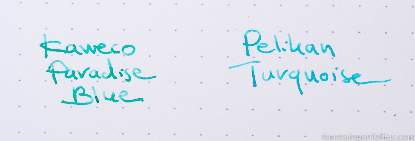 Pelikan Turquoise falls on the blue side of the turquoise range, and also features great shading, albeit blue and blue rather than blue and green.
